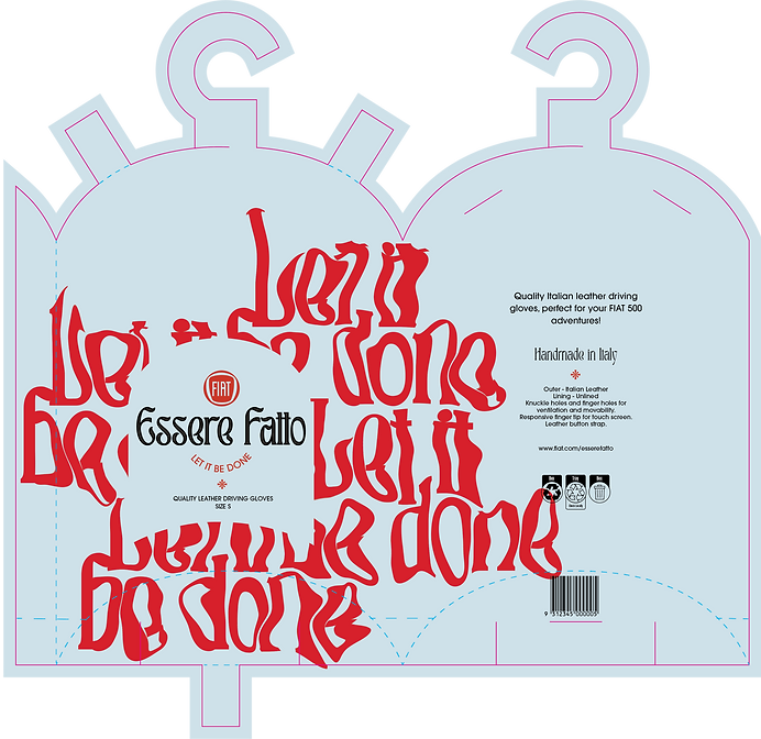 The sub-brand Essere Fatto, meaning 'be done,' nods to FIAT's Italian heritage. Inspired by the FIAT 500's curved features, the package is compact, fitting in a glove box or handbag, and includes handles for easy hanging. The retro-inspired graphics and typography evoke energy and excitement, echoing the car’s shape with an adventurous, winding road design.